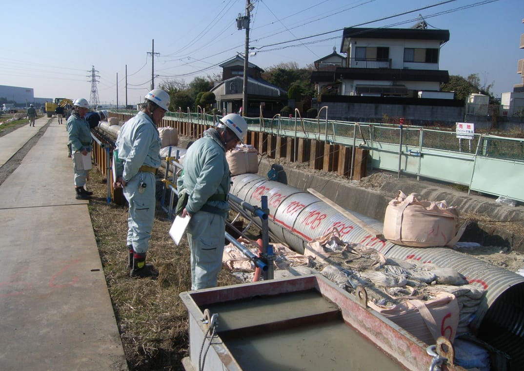 私たちの主な仕事は、土木・舗装工事が中心です。主なお取引先としては、愛知県や各市町村となり、いわゆる公共工事が中心の部署です。工事の内容としては、道路の新設または拡幅工事、舗装修繕工事、下水道築造工事、河川護岸工事、土地造成工事など多岐にわたります。
